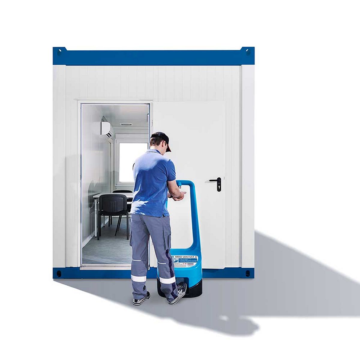 De niet kantelbare staande unit is te gebruiken in binnen- en buitenruimtes, los van de sanitaire voorzieningen die u al heeft. Het hygiënestation is uitgerust met een tank van tien liter voor handdesinfectiemiddel of handwaslotion. De vulling is voldoende voor zo'n tweeduizend toepassingen. TOI® CARE hand sanitizer heeft geen stroomaansluitingen of batterijen nodig. Ook montage is niet nodig. Op verzoek kunnen onze servicemedewerkers de sanitizer vervangen. De minimale huurperiode voor bouwplaatsen bedraagt vier weken.
