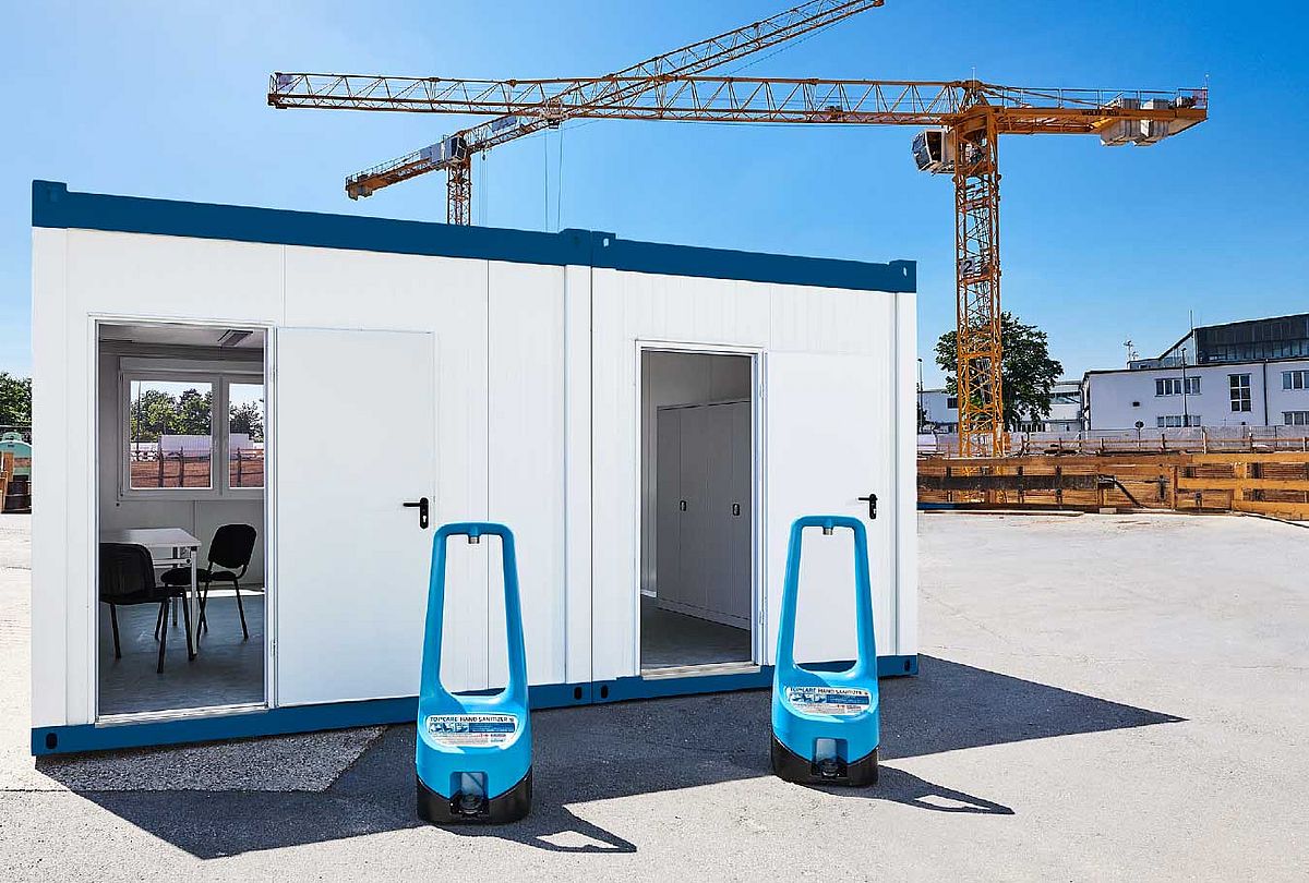 Bent u op zoek naar een praktische, flexibele oplossing voor de strenge hygiëne-eisen die gelden op onder meer bouwplaatsen? Kies dan voor de TOI® CARE hand sanitizer. De mobiele dispenser voor handdesinfectie is contactloos te bedienen met een voetpomp. Met zijn compacte afmetingen en robuuste ontwerp is de dispenser gemakkelijk te vervoeren en maakt hij een snelle, veilige handdesinfectie mogelijk. Precies wanneer het nodig is.