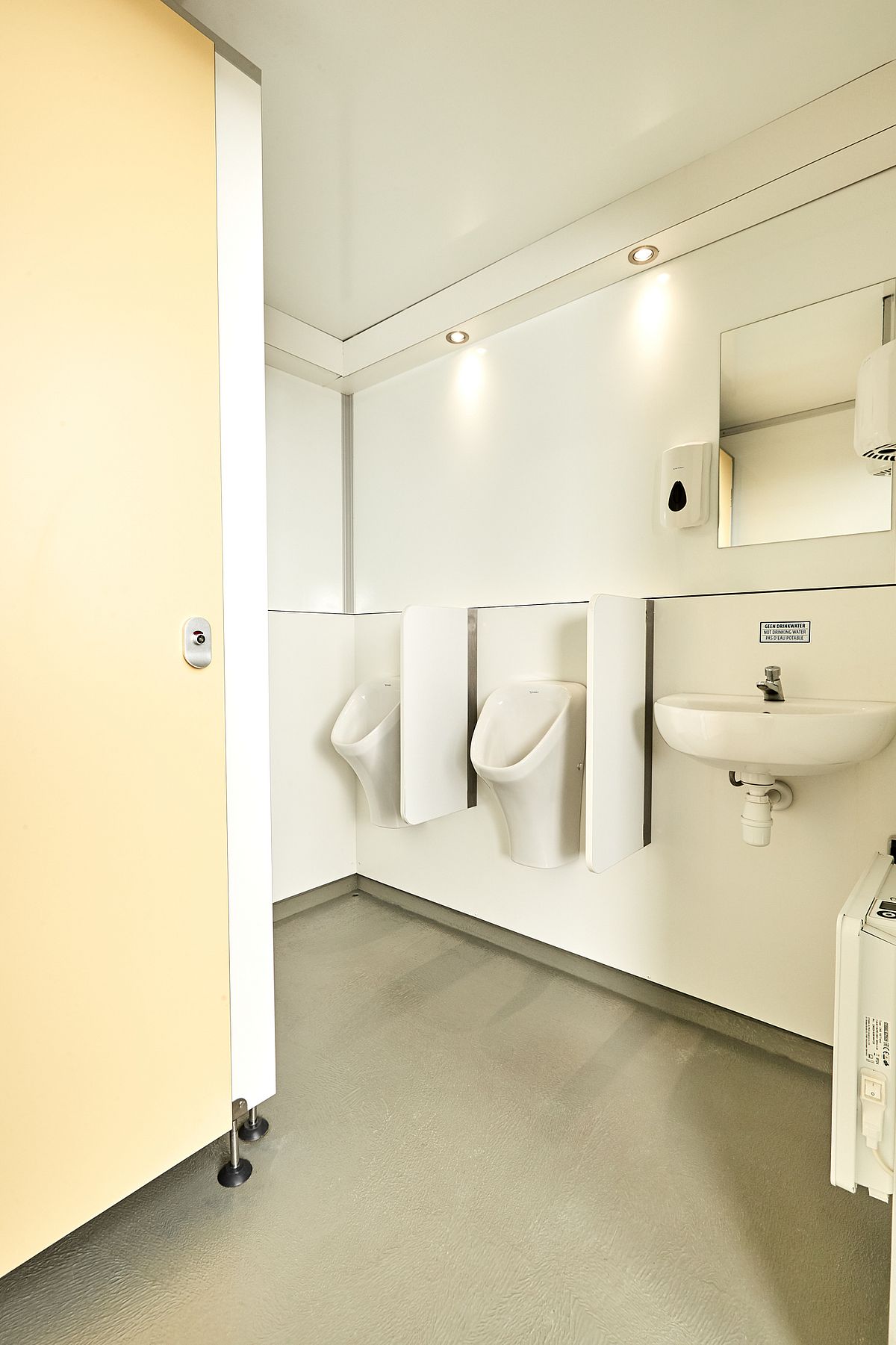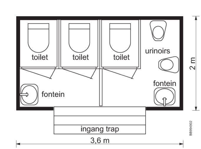 Deze toiletwagen type A heeft twee damestoiletten, een herentoilet en twee urinoirs. De wagen beschikt daarnaast over spiegels, zeepdispensers, elektrische handendrogers en verwarming.