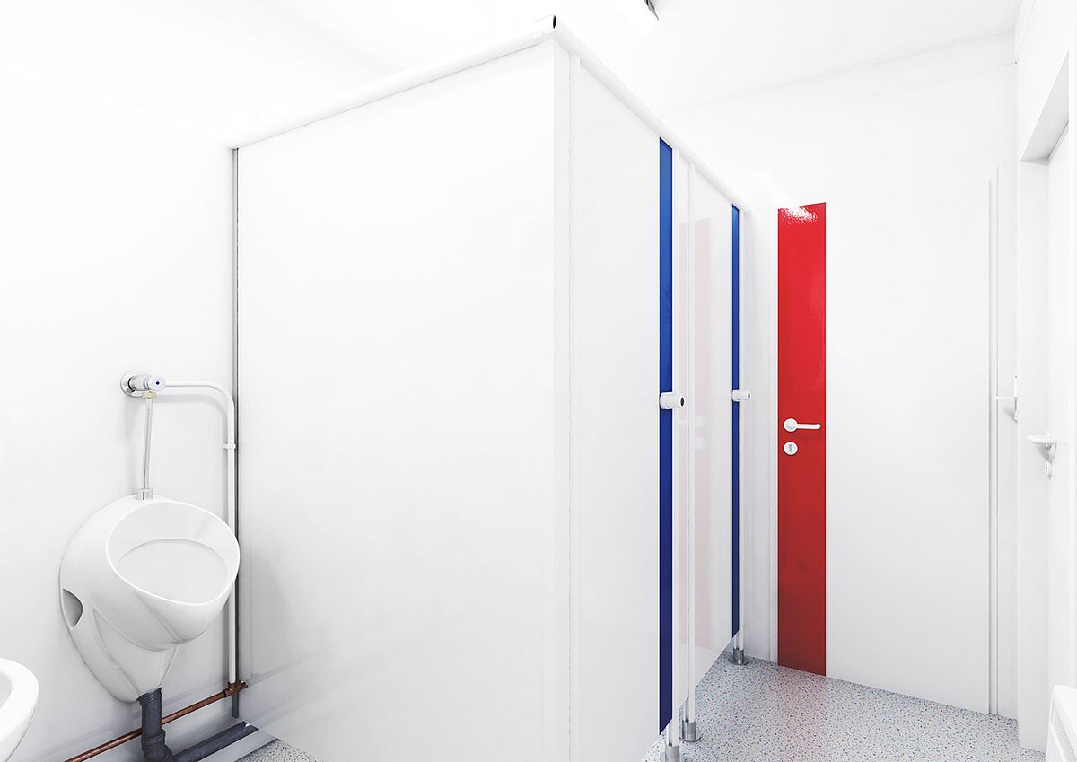 De 20-ft containers zijn prettig ruim. Zo heeft het vrouwentoilet drie afsluitbare toiletten en een ingang waar een wastafel, zeepdispenser, handdoekdispenser en verwarming te vinden zijn. Het mannentoilet heeft twee aparte toiletten, twee urinoirs, een wastafel en een radiator. Omdat de zones gescheiden zijn, kunnen ze tegelijkertijd worden gebruikt.